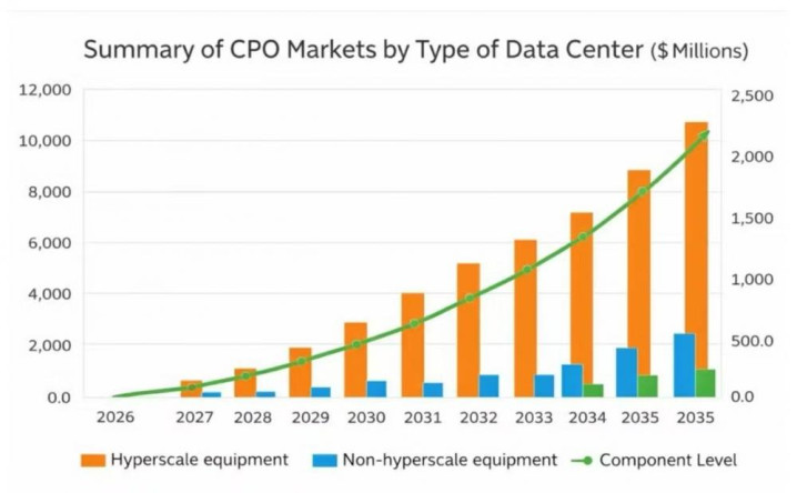 跟着运营商在开荒、供应链、线缆照应和散热等方面竖立信心,CPO市集限度将渐渐增长。与通盘此类技能相通,若CPO见效,其增长将口舌线性的。