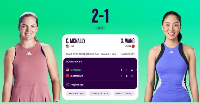 03月21日讯 WTA1000迈阿密站第二轮,29号种子王欣瑜4-6、6-1、0-6不敌麦克纳莉,无缘32强,阳光双赛遭受背靠背首战出局。