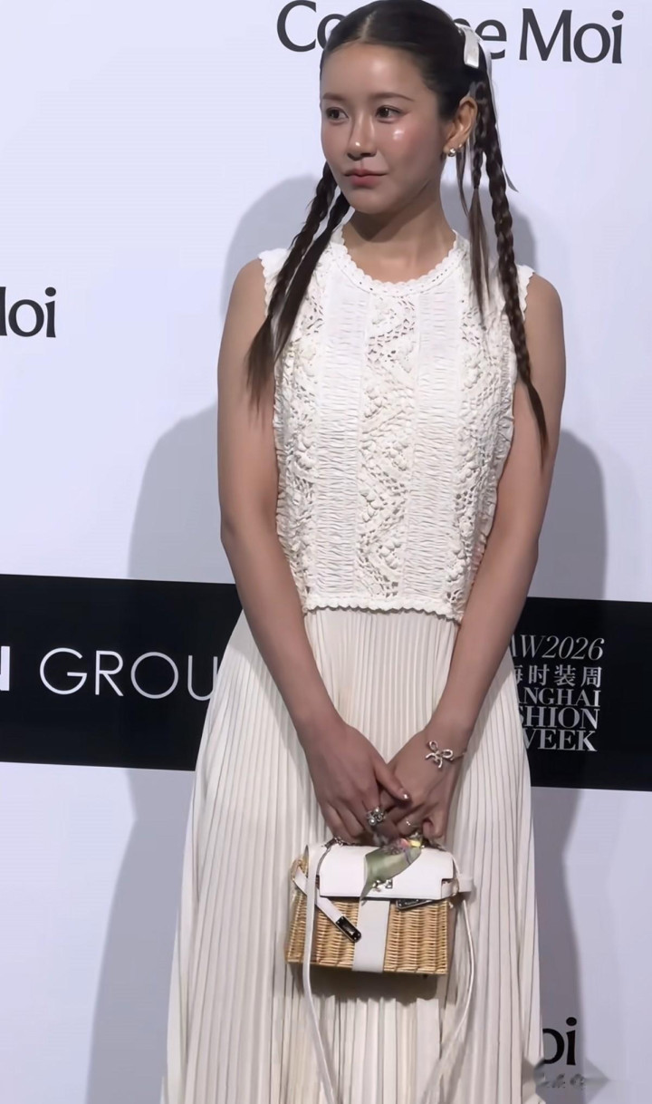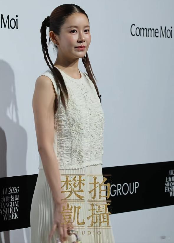 她孤苦顺色搭配看着很兴隆,发型也扎了个甜甜的麻花辫,那边幅瞅着还真有点民国女学生的乖巧劲儿,氛围感拉得很足。